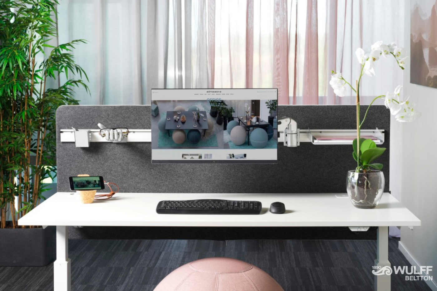 En bordsskärm kan bidra till att skapa en mer privat och fokuserad arbetsmiljö på flera sätt: