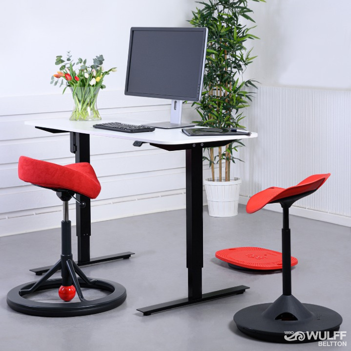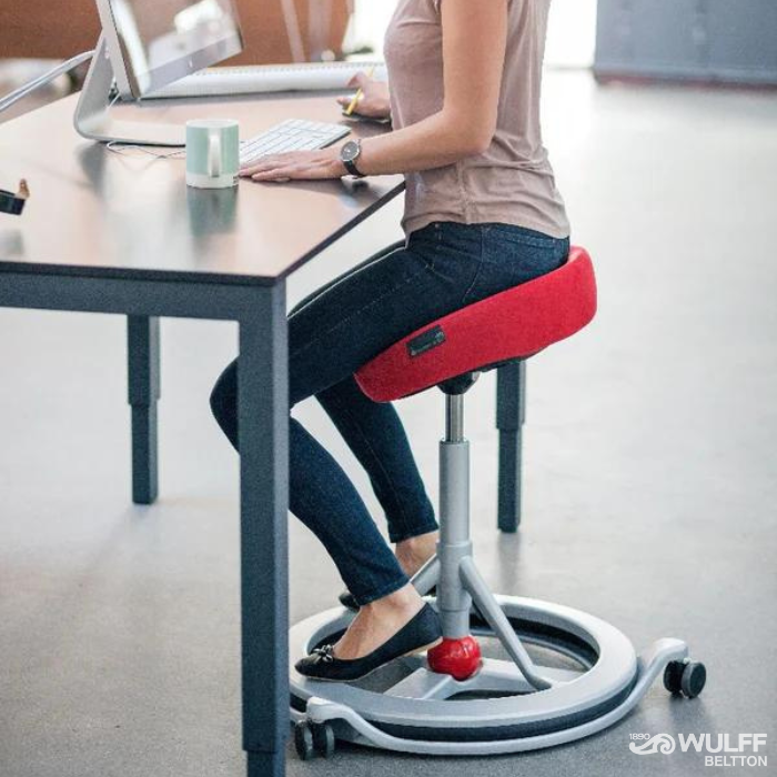 - Aktivt sittande: Sadelstolen möjliggör en mer aktiv sittställning där användaren sitter med benen något isär och höfterna lite framåtböjda. Detta kan bidra till att förbättra cirkulationen och minska stelhet i kroppen under långa arbetspass.