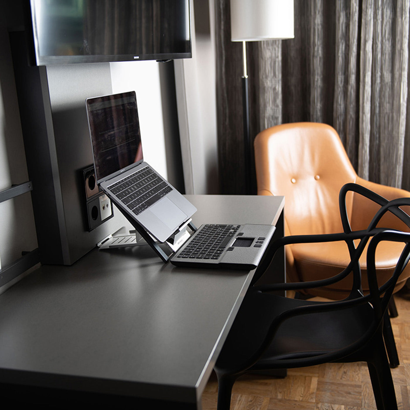 Den centrerade placeringen av Mousetrapper framför tangentbordet ger en bra ergonomisk arbetsställning med armarna nära kroppen och händerna nära tangentbordet.