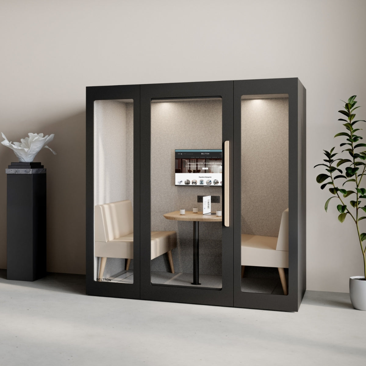 Vid köp av ett telefonbås / Tyst rum kan du välja att köpa till inbärning och montering för att få en så kallad totalentreprenad.
