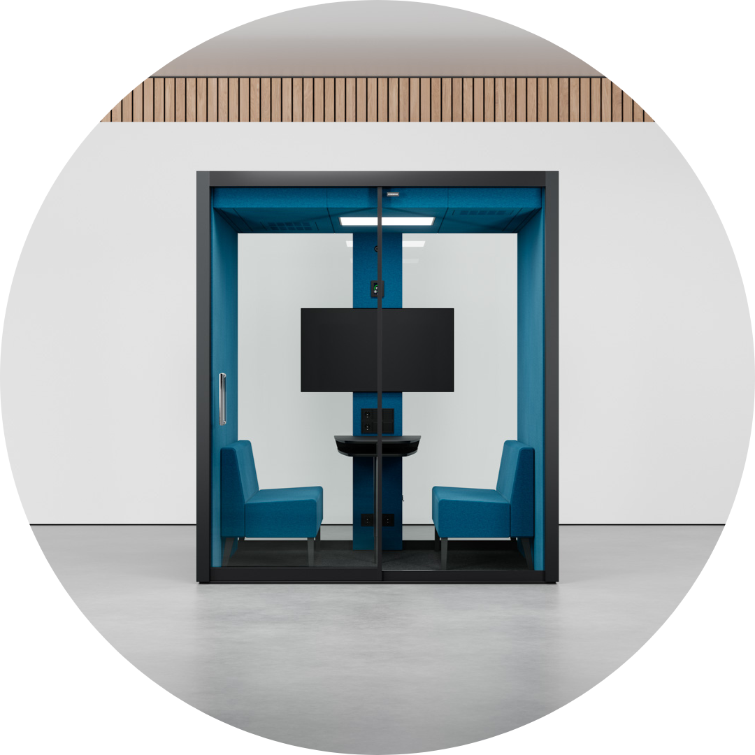 Söker du efter ett stilla rum där du kan fokusera och arbeta på egen hand, eller kanske en inspirerande atmosfär som utgör en perfekt inramning för ditt kommande viktiga möte? Vårt utbud av ljudisolerade bås kommer i en mängd olika storlekar, så välj det som passar dina behov bäst.