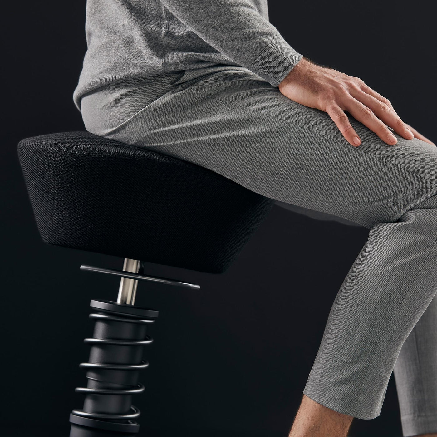 Balanspallens låga svängbara fjäder ser till att du sitter aktivt. Även när du lutar dig framåt kommer din rygg att hålla sig rak utan extra ansträngning från din sida.
